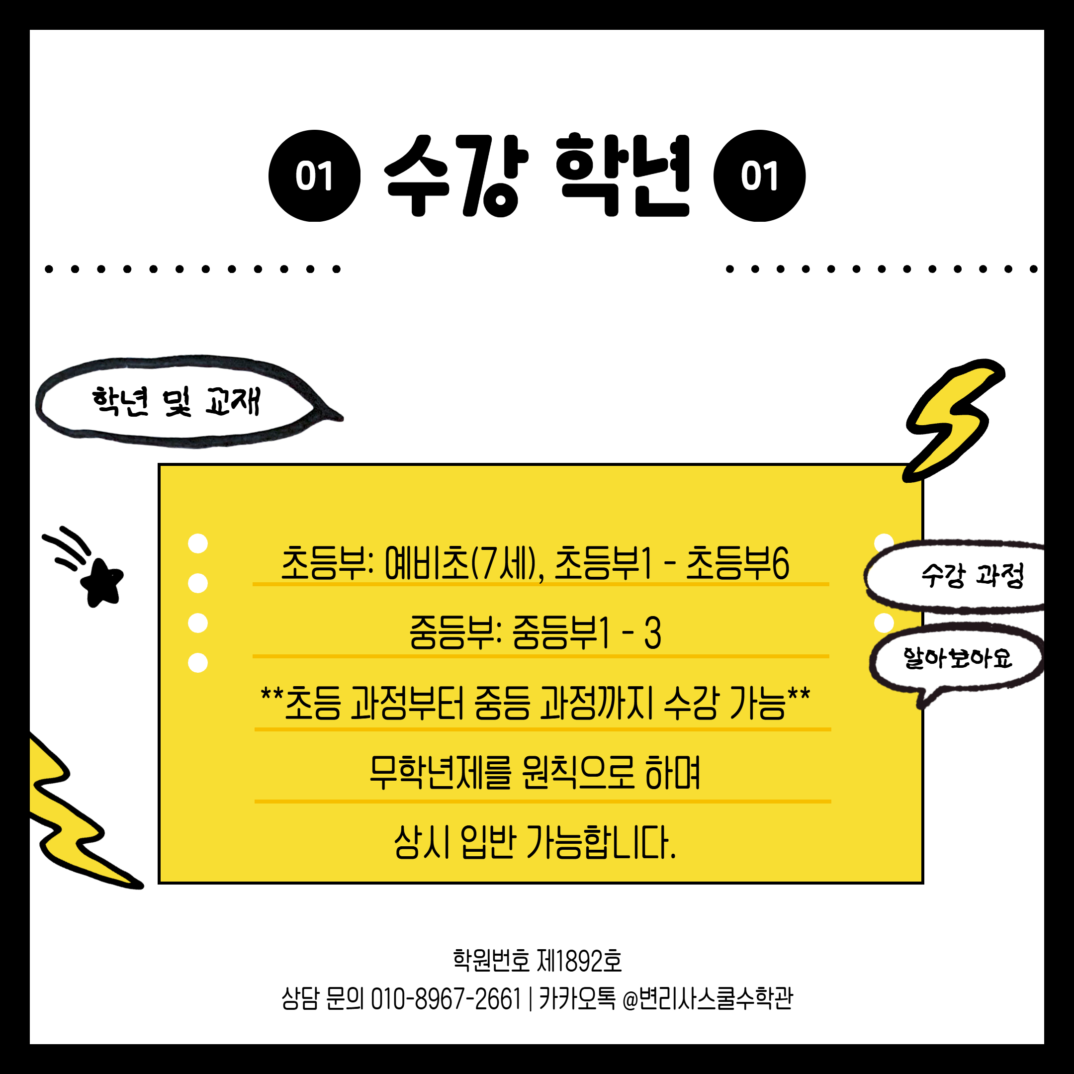 변리사스쿨 운정수학관 | 운정 해오름마을 초중등 맞춤 수학반 모집 공지 NEW
