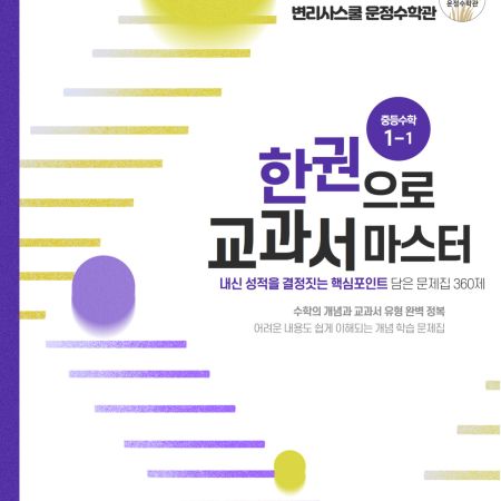 안녕하세요 변리사스쿨 운정수학관입니다. 학생들의 내신 성적을 위해 본원에서 제작한 맞춤형 교재를 소개드립니다. "내신 성적을 결정짓는 핵심포인트" 이 교재에 담았습니다! ▶ 시중 모든 교과서 문제를 난이도별로 정리해 학습 효율을 극대화 ▶ 자주 출제되는 중요 문제 유형 집중 학습으로 실전 감각 강화 이 교재는 학생 개개인의 학습 상황에 맞춰, 취약한 부분을 보완하고 강점을 더욱 키울 수 있도록 설계되었습니다. [교재 구성] 교과서 필수 유형 360제 난이도별 문제 구분 (심화 ▷실력▷최상) 내신 성적은 단기간에 완성되지 않습니다. 이 교재를 통해 매일 꾸준히 학습하며 실력을 다져 나가길 바랍니다.